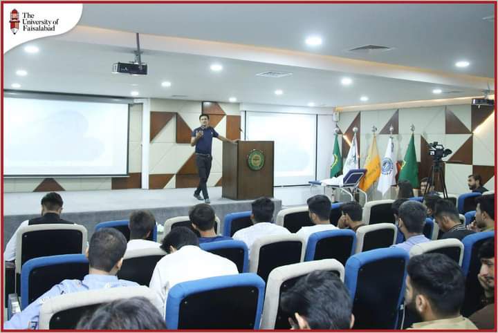 On Thursday 29th Feb 2024, Placement Bureau of The University of Faisalabad, in collaboration with State Bank of Pakistan BSC, Faisalabad, organized an enlightening awareness session on the Young Islamic Banking Professionals Program (Y-IBP). Distinguished speakers from the banking sector, including Mr. Waqas Kashif Bajwa and Ms Quratulain Bilal shared valuable insights and motivated students to explore career opportunities in Islamic banking. Dr. Muhammad Sohail conducted an engaging training session, enhancing participants' understanding of Islamic banking principles and product development. Students actively participated, asking insightful questions and showing enthusiasm towards the program. A quiz was conducted followed by awareness session, successful students are set to embark on summer internships at esteemed banking setups and receive complimentary certifications in Islamic Banking.